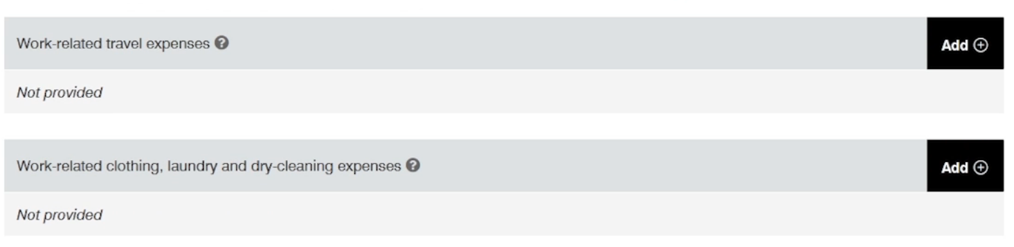 - Work related expenses: clothing, protective clothing, work education, union fees, membership fees